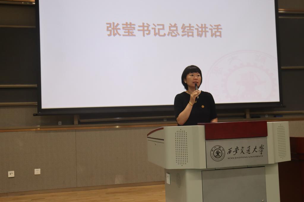 张莹书记在总结讲话中鼓励同学们面对挫折时保持乐观心态,要注重全面发展,新起点树立新目标,奋勇争先传承西迁精神,争做“创新、坚韧、包容、诚信”的新时代有为青年