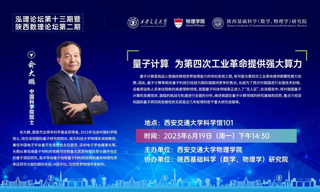 【泓理论坛第十三期暨陕西数理论坛第二期】——量子计算 为第四次工业革命提供强大算力