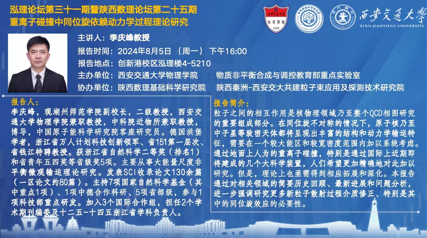 【泓理论坛第三十一期暨陕西数理论坛第二十五期】——重离子碰撞中同位旋依赖动力学过程理论研究