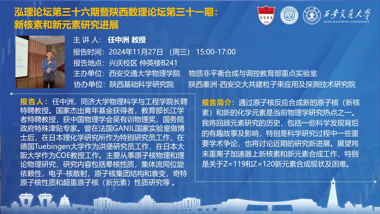 【泓理论坛第三十六期暨陕西数理论坛第三十一期】—— 新核素和新元素研究进展