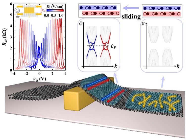 相关成果以“双层石墨烯中层间滑移诱导的拓扑谷输运(Topological valley transport in bilayer graphene induced by interlayer sliding)”为题,于2025年9月16日在《Physical Review Letters》期刊上发表,同时入选编辑推荐(Editors’Suggestions),并被美国物理学会旗下官方线上杂志《物理》(Physics Magazine)选为物理亮点(Featured in Physics)。
