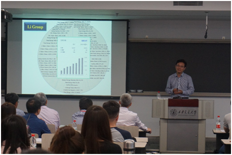 李喜飞教授对锂/纳电离子电池电极材料界面的设计与优化进行了趣味横生的介绍。报告中,李喜飞教授详细介绍了如何提高各类电池的能量密度,精彩讲解了正极材料的各类包覆技术如何实现对电池性能的有效提升,比较了不同包覆技术的优缺点,此外,还针对负极材料的结构调控,专门讲述了针对石墨烯基负极材料的最新研究进展。李喜飞教授勉励各位同学做科研要有坚持不懈的恒心和永葆童心的科研兴趣,抓紧每一分每一秒投身科学研究。