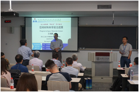 王海鹏教授以空间材料为主题,介绍了在超真空、微重力的空间环境下进行各类实验的特点,阐述了如何在地面环境模拟空间环境的策略,讲解了空间环境下材料的凝固过程,为各位师生带来了一场精彩的学术报告。