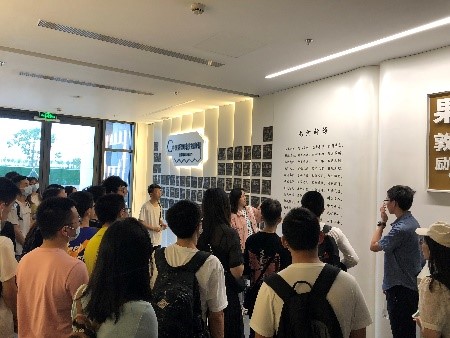 在班主任王淑娟老师、谭少博老师以及学业导师熊礼龙老师的带领和介绍下,同学们首先参观了创新港校园;然后来到了化学学院所在的泓润楼,博士生李丹同学为大家介绍了学院最具代表的化学元素墙,并带领大家参观了化学空间,同学们对有意思的化学巧思设计表现出极大的兴趣。接着,由张志成书记和曾荣教授分别带领同学们参观并介绍了有机合成和高分子合成实验室,使同学们对化学人的科研环境,以及老师和研究生的工作环境有了更直观的认识。