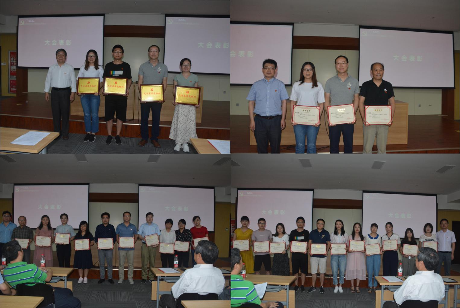 表彰大会在激昂的国歌中拉开序幕,党委委员、副院长李宏荣宣读了2018-2019年度理学院党委七一表彰决定,经支部党员推荐,党委研究决定,授予机关党支部、化学第二党支部、博士材料科学与工程(化学)党支部、硕7092党支部等4个支部“先进党支部”荣誉称号,祝忠民等4名党员“优秀党务工作者”荣誉称号,郑阿群等28名党员“优秀共产党员”荣誉称号。理学院党政领导、党委委员分别为获奖党员颁奖。