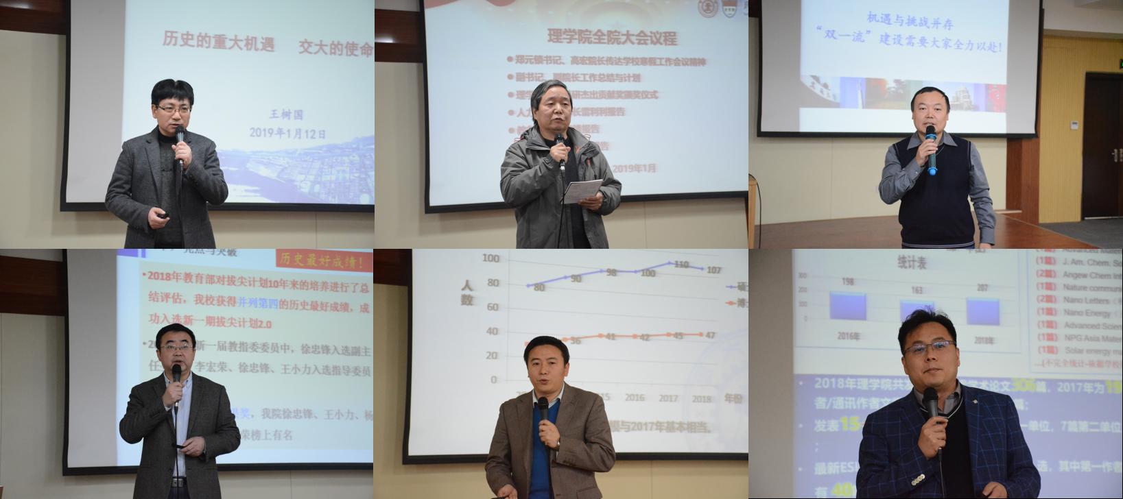 理学院副书记严红昌、副院长李宏荣、张志成、赵永涛先后向大会做工作总结报告,从研究生教育管理、教学工作、研究生培养、科研外事工作方面总结2018年的工作中取得的成绩和亮点,同时查摆问题,分析原因,汇报2019年工作计划。