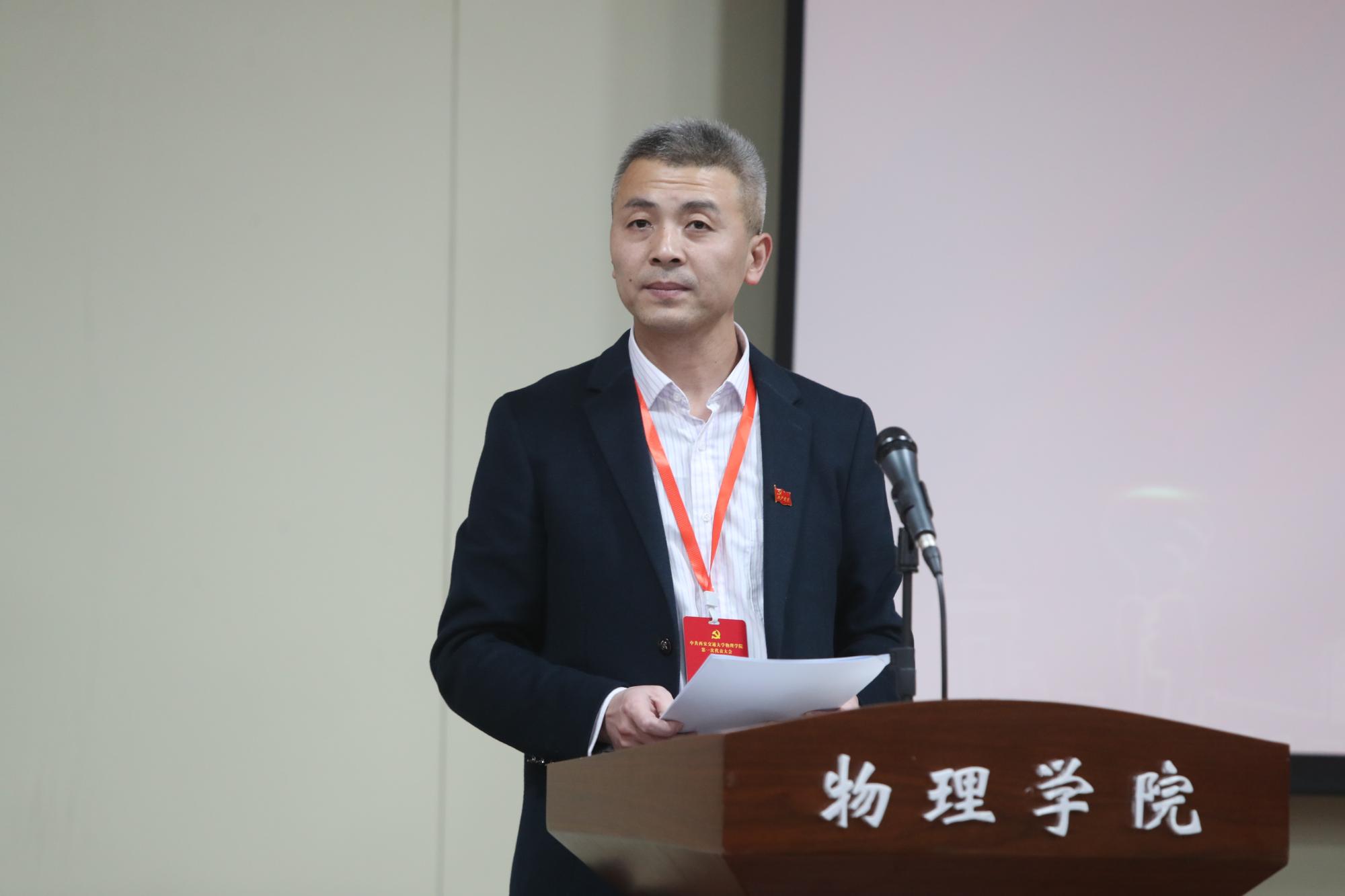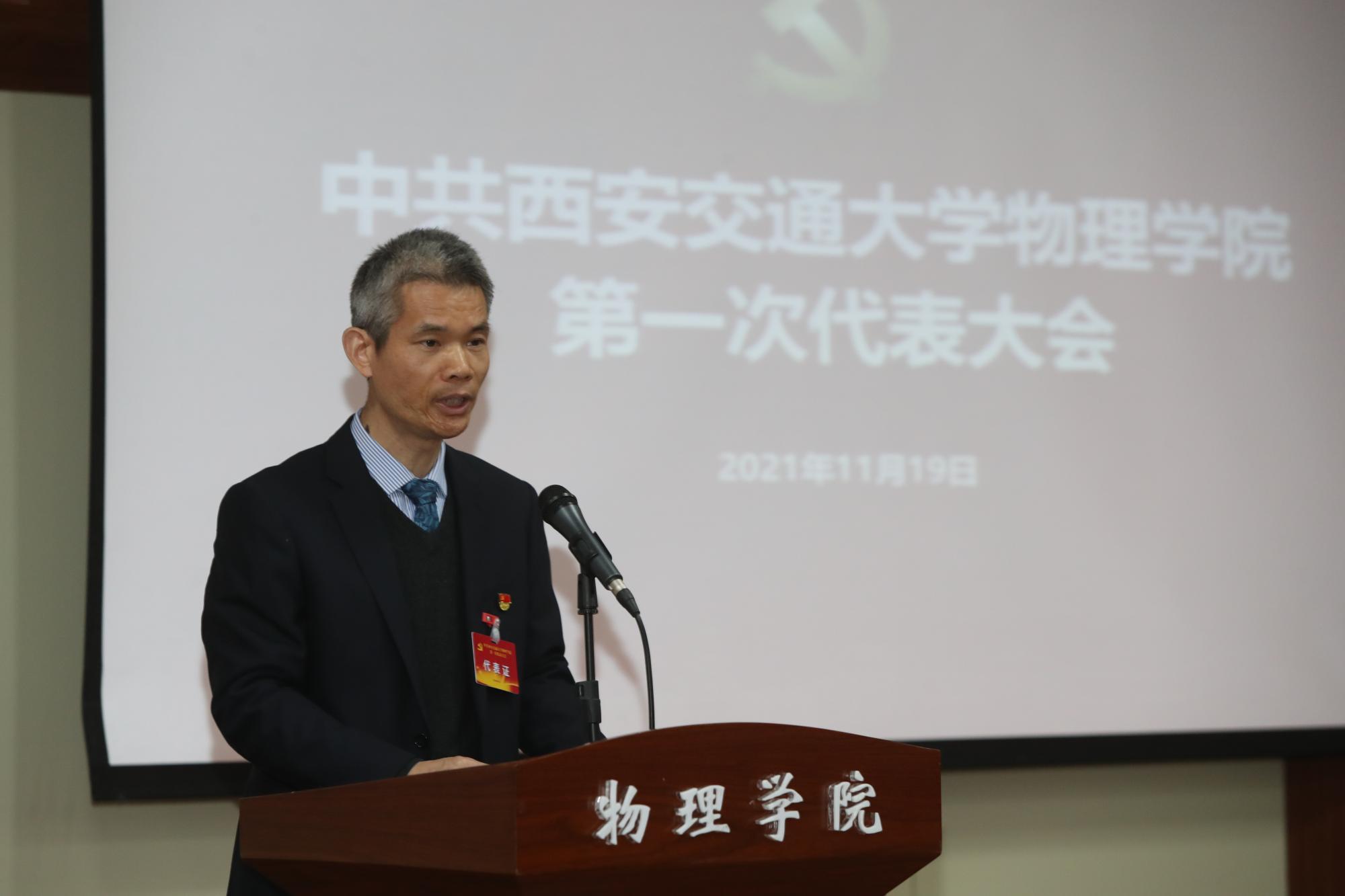 杨小渭同志代表学院党委系统回顾了过去五年学院在师资队伍、学科建设、人才培养、科学研究等方面取得的显著成效,结合学院改革发展进程和学校“十四五”发展目标,明确了下一步的发展思路和奋斗目标,坚持党建引领,围绕立德树人根本任务,融合我校学科的优势力量,形成一流交叉科研教学平台,在五个主体学科方向上产生具有国际影响力研究成果,秉承百年学科和西迁精神的优良传统,开启物理学院高质量发展的新征程。