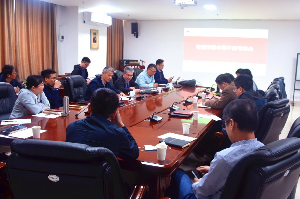 4月1日,物理学院召开2021年度中层干部述职评议考核会,学院党政领导、中层干部参加会议。会议由党委书记杨小渭主持。