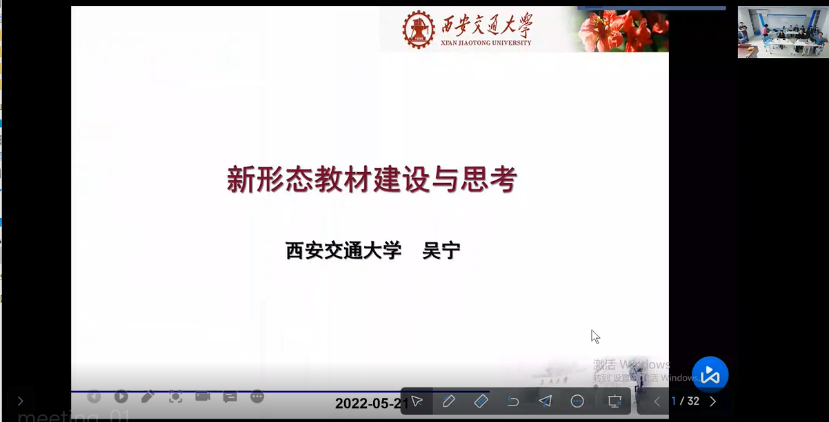 为贯彻2022年全国教育工作会议精神,落实《教育部2022年工作要点》及教育数字化战略行动,以教育信息化推动教育高质量发展,深入推进物理类一流课程与教材建设,研讨交流信息技术与课程的融合创新,促进优质课程与教材的广泛使用,2022年5月21日下午,西安交通大学《大学物理》课程虚拟教研室联合王小力名师工作室、西安交通大学教师教学发展中心和高等教育出版社理科事业部物理分社以线上线下混合形式召开了第二次工作会议暨数字教材建设研讨会,线下会场设在王小力名师工作室(仲英楼B201)。