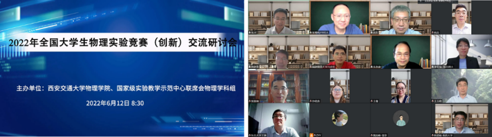 6月12日, 2022年全国大学生物理实验竞赛(创新)交流研讨会在西安交通大学举行。鉴于目前全国各地疫情的影响,参赛学校无法进行线下的交流,会议通过线上的形式进行。会议邀请了各大高校的专家学者以及获得往届优秀作品的学生代表与会交流。西安交通大学物理学院党委副书记张沛教授主持开幕式。
