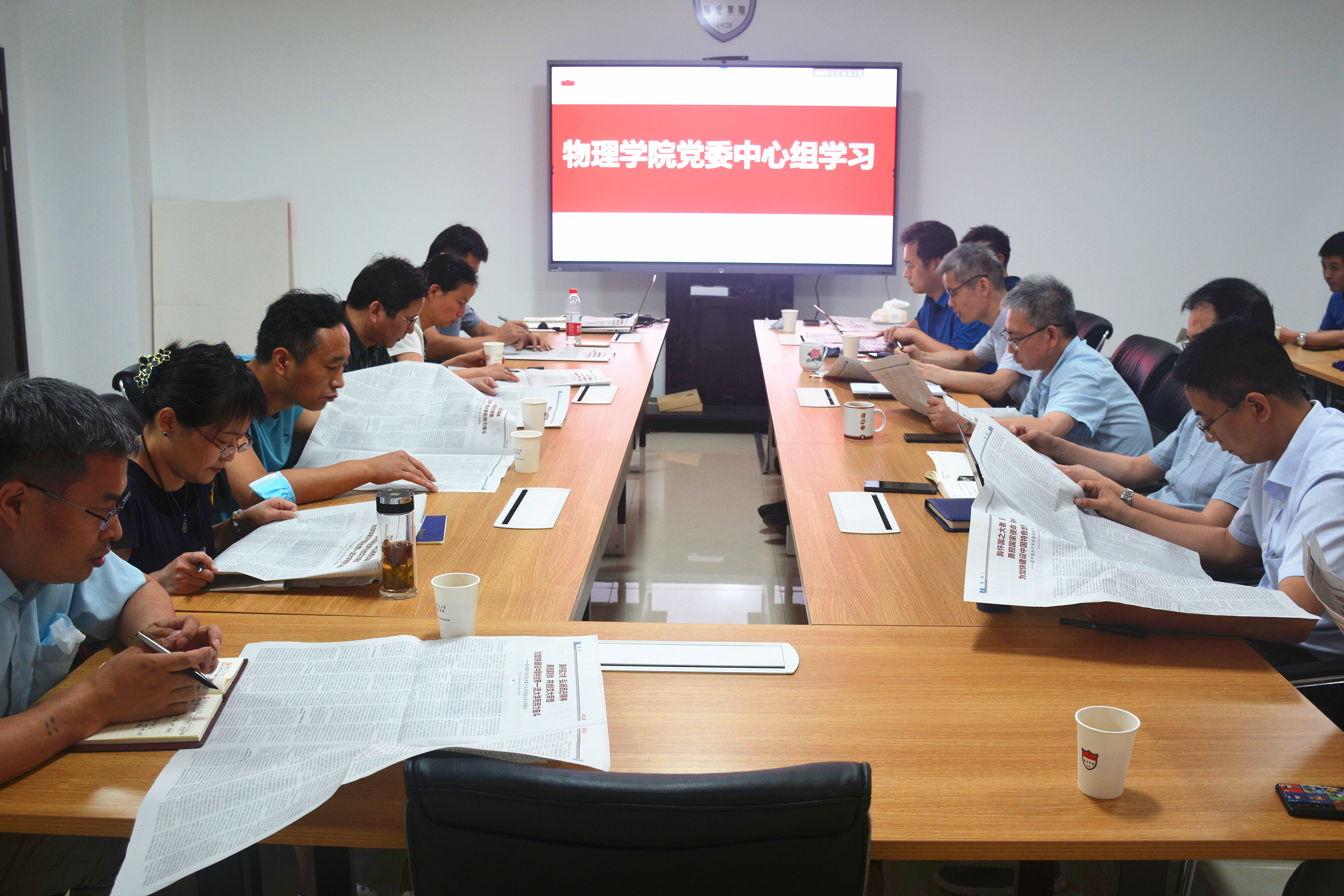 6月27日,物理学院召开党委中心组扩大会议,集中学习研讨学校第十三次党代会精神。党委中心组全体成员、学院中层干部参加学习。党委书记杨小渭主持会议。