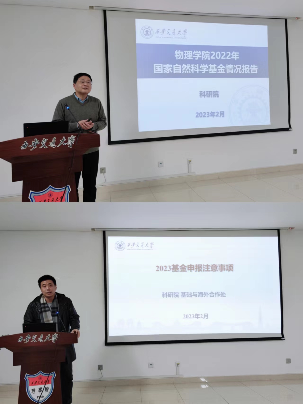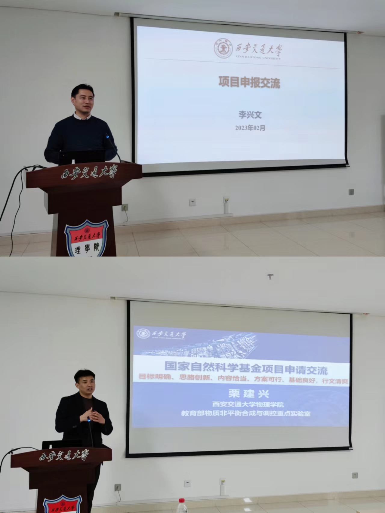 李兴文在分享工作经验和体会时谈到,申报人应瞄准国家重大需求,加强国内外交流与合作,抓住机会培养并提升全面素质,“坚持不懈”和“另辟蹊径”相结合,高质量完成项目,形成良性循环。刘永忠用详实的数据全方位分析了学校和物理学院2022年基金工作情况,并对2023年基金申报提出了宝贵建议。栗建兴教授从评审专家和申请人的角度解析了基金申报过程中应该注意的事项,建议大家一定要认真仔细地对待每一段文字、每一个图表,确保申请书以最佳的状态呈现在评委面前。何会老师深入浅出地讲解了基金项目申请的注意事项和相关说明,从科研管理工作者的视角使教师对基金申报工作有了更深入的理解。