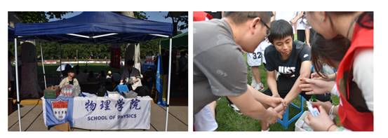 在此次运动会举办期间,物理学院一群可爱可敬的志愿者也是一抹亮丽的风景线。他们穿梭在运动场内外,为运动员提供细致贴心的后勤保障服务,保证全体运动员以最佳状态投入比赛,他们默默付出、无私奉献,是运动场上最可敬的志愿服务团队。