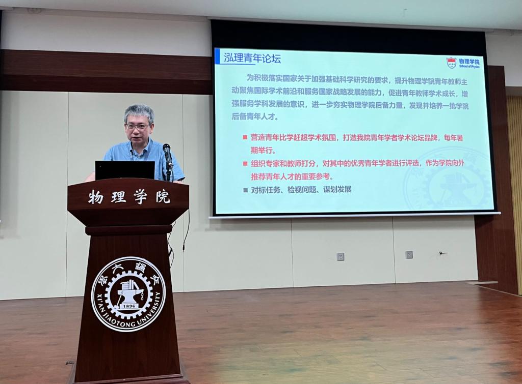 为贯彻落实习近平总书记关于教育科技人才的重要论述精神,加强基础学科科学研究和人才队伍建设工作,提升青年教师主动聚焦国际学术前沿和服务国家战略发展的能力,促进青年教师学术成长,进一步夯实学院后备力量,6月26日物理学院举办第一届“泓理青年论坛”。学院党政班子成员、学术委员会专家及全体教师和部分学生代表参加了论坛。会议由杨志懋副院长主持。