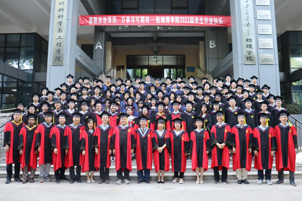 6月30日下午,物理学院2023届毕业典礼暨学位授予仪式在仲英楼B102举行。物理学院党委书记张莹、院长高宏、副院长李蓬勃、副院长赵永涛、励志书院院务主任徐慧,以及学位委员会代表、导师代表、家长、辅导员代表,毕业典礼由副书记张沛主持。2023届全体本科生、研究生共102名参加了毕业典礼,毕业生们在交大的青春岁月画上了圆满的句号,在新的征程中启航再出发!
