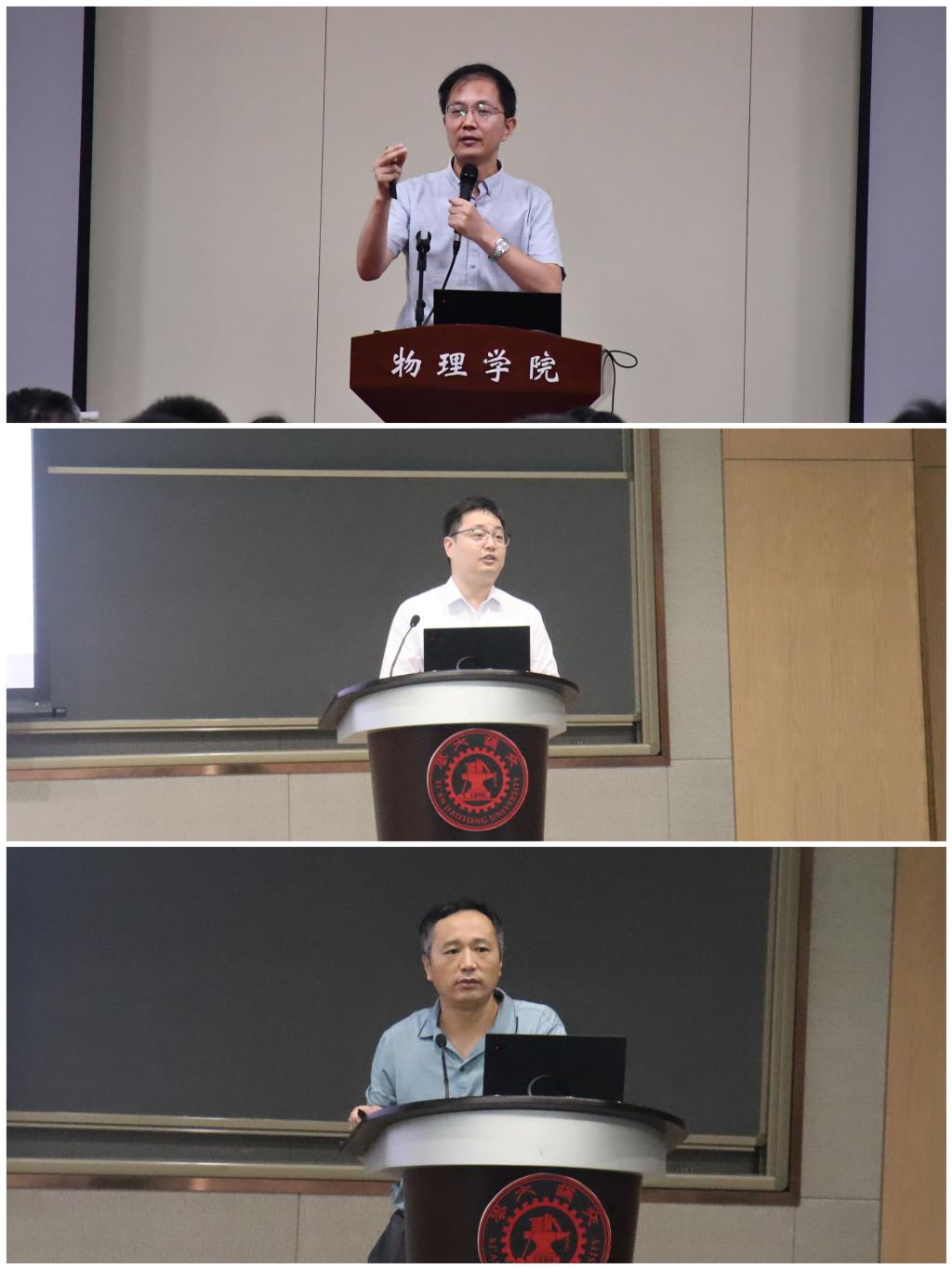 李蓬勃副院长从物理专业培养方案、学籍管理规定等方面介绍了本科生培养管理情况。院长助理孔春才从研究生学籍学历管理规定、奖助学金、论文督导、研究生培养、三助一辅等方面对研究生培养政策进行了详细解读,尤其强调了研究生学位论文质量保障工作实施细则。张沛副书记从政治、生命、宿舍、实验室、财产和身心健康安全六个方面展开,列举各种案例强调了同学们应提高安全意识,注重身心健康。研究生导师代表杨生春以聊天的方式与大家分享研究生阶段需要注意的方面,他鼓励同学积极与导师交流,遇到难题积极寻找解决方法,重视学科交叉学习,注重锻炼自身能力。