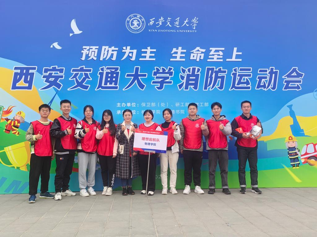 11月21日下午,西安交通大学第四届研究生消防运动会在创新港涵英楼北运动场举行,来自27个学院的300余名参赛选手参加本次运动会。物理学院党委书记张莹出席活动开幕式并到现场为学院代表队加油打气。物理学院参赛队伍“理想起航队”,由辅导员刘文慧带队,队员有袁核、王浩天、吴延熙、丁思丹、余思滢、陈泽文、张伟、赵佳晟、宁雅云、陈佳琪、颜佳婧十一名同学。比赛共有四个项目:水带接力、烟雾灭火、障碍救援和危急时刻。