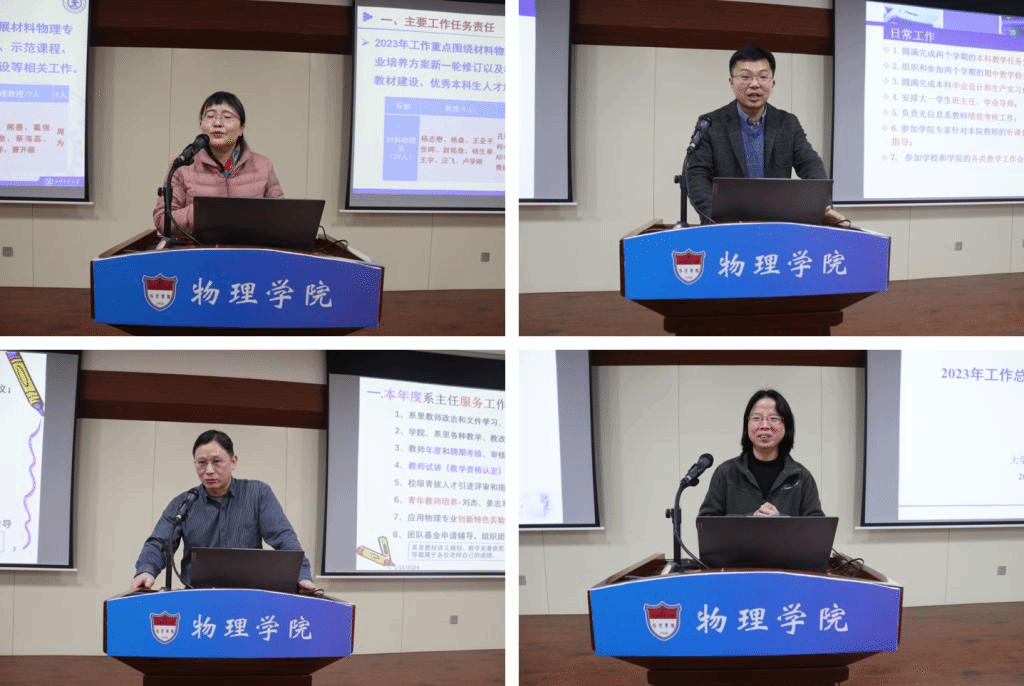 院长助理穆廷魁、高博分别汇报在基础研究院和创新港建设、协助人才培养、教学总体工作和科研专项等方面的工作成效。学院各系所中心主任向大会进行述职,汇报2023年各系所中心主要工作成效和2024年度工作计划。