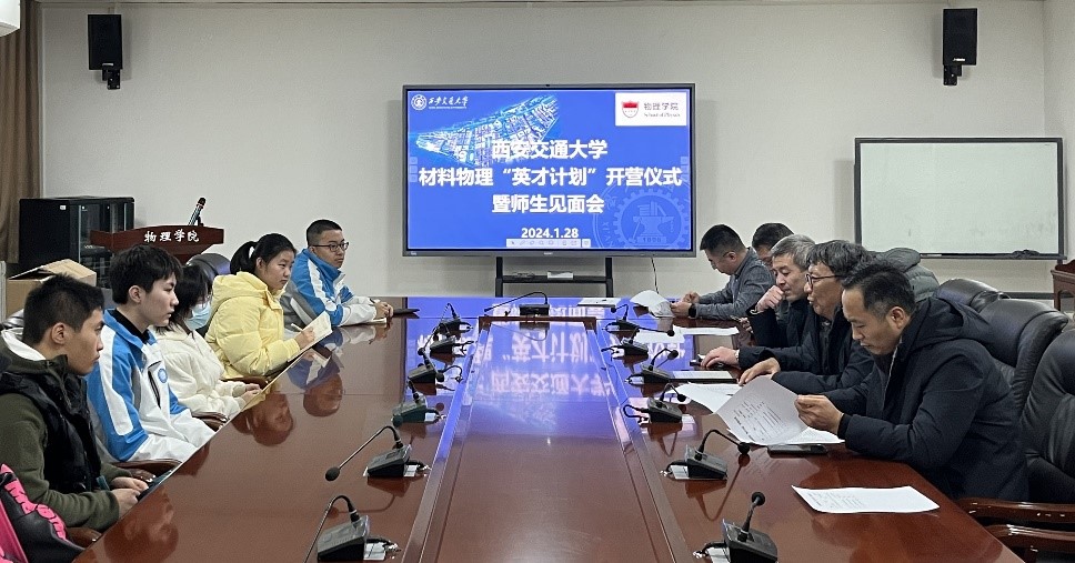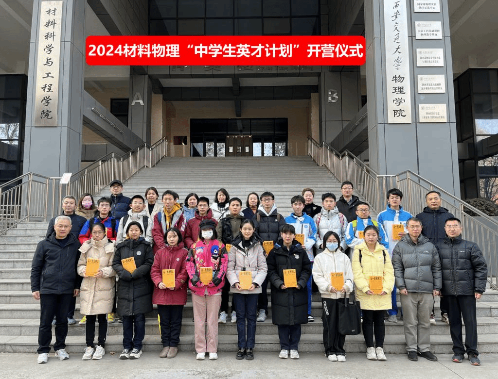 1月28日下午,西安交通大学材料物理学科“中学生英才计划”开营仪式在仲英楼B239举行。钱学森学院常务副院长杨森教授、物理学院副院长杨志懋教授、物质结构与功能调控研究所所长杨生春教授,以及物理学院汪飞教授、王宇教授、周超副教授,与来自西安交通大学附属中学、西北工业大学附属中学、西安铁一中学、陕西省西安中学、陕西师范大学附属中学、西安电子科技大学附属中学的18名学生参加了此次活动。本次活动由周超副教授主持。