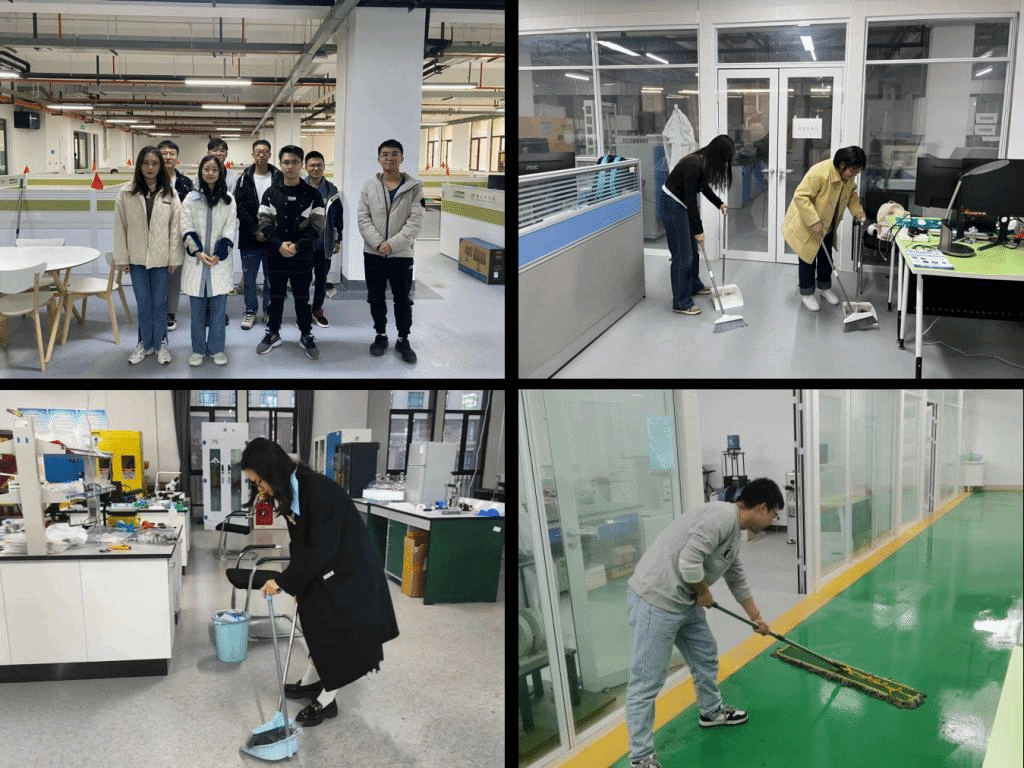 活动当日,博激光与理论党支部、博光学与天文党支部、博凝聚态物理党支部、硕2021级党支部、硕2023级第一党支部、硕2023级第一党支部、博2376团支部、博2263团支部、硕1198团支部、硕3219团支部、硕3220团支部、硕3221团支部、硕3222团支部分别组织党团支部同学在工位及实验室展开行动,携带扫帚、拖把等清洁工具,清理了工位和实验室周围的垃圾死角和地上的纸屑、塑料袋等杂物,用抹布擦拭了书桌以及重新整理了物品摆放位置,使得工位环境更加干净整洁。