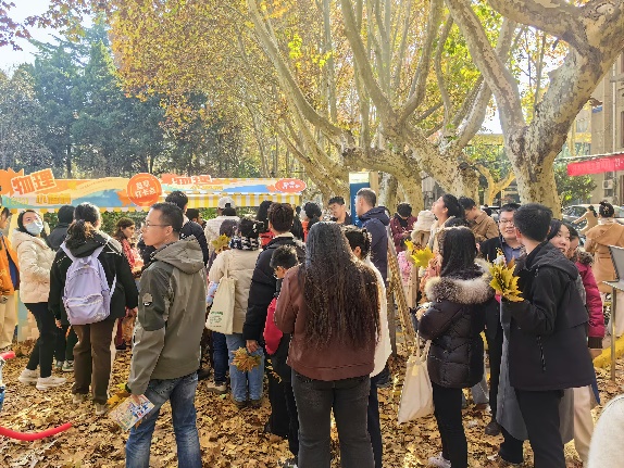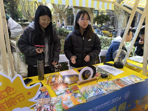 11月29日中午,“叶影知秋”激光叶雕科普活动正式开启。在学院教师的带领下,来自物理学院励志书院师生联合党支部的同学用激光打标机对落叶进行定制化人像照片及校徽校训雕刻,在雕刻中科普激光原理,作为金色梧桐节最好的文创礼物深受广大师生的喜爱。在为期3天的活动中,“物理小梧桐”盖章打卡点的现场气氛非常热烈,叶雕文创作品将物理科学与文艺创作深度融合,将科普教育与思政教育有机结合,既普及科学原理,又熏陶文艺气息,还融入人生道理,受到广大师生热烈追捧。