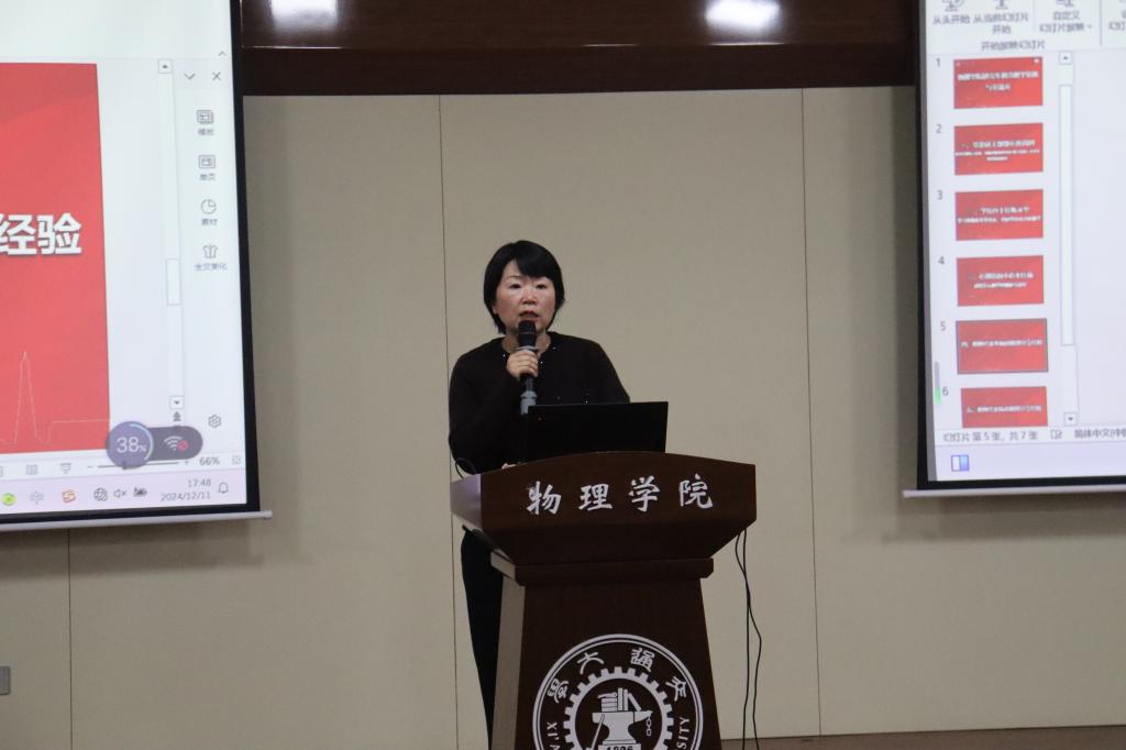12月11日下午,物理学院研究生教育教学培训工作会在仲英楼B102召开。本次会议由物理学院副院长赵永涛主持,研工部部长薛周利、学位办主任陈永华、心理咨询中心李红燕出席会议,物理学院党政领导、全体研究生导师和青年教师参加会议。