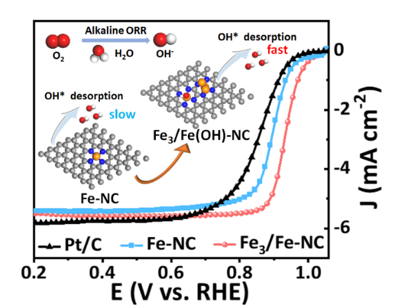 杨生春教授、梁超研究员及其团队在高活性电催化研究中取得了重要突破。相关成果以“Spin Polarization Regulation of Fe-N4 by Fe3 Atomic Clusters for Highly Active Oxygen Reduction Reaction”为题,于2025年3月10日发表在《Science Bulletin》。该研究实现了高熵原子团簇调控Fe-N4的d轨道电子,从而在氧还原反应(ORR)中表现出优异的活性和耐久性。