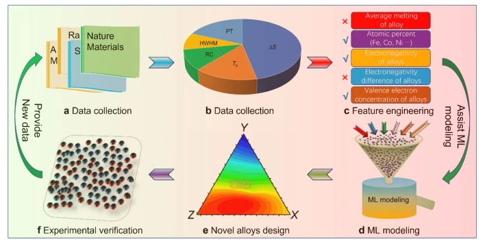 1. 1月8日,杨森教授团队实现了通过特征插补和特征工程建立了合金成分与相变之间的可解释关系。采用机器学习进行高效预测实现高精度筛选出具有期望熵变和磁转变温度的潜在NiMn基Heusler合金,成果发表于Rare Metals