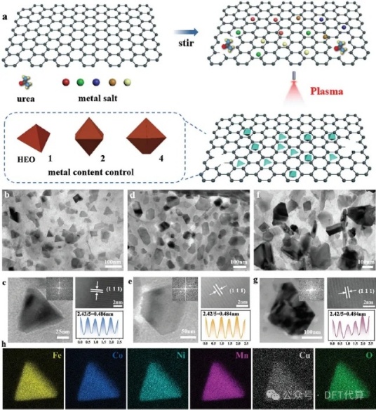 孔春才教授联合北京控制工程研究所、华中科技大学等单位,提出了一种基于等离子体诱导几何工程的高熵氧化物复合材料设计新策略,成功制备出具有精确纳米形貌控制的截角八面体HEO/RGO吸波材料,其电磁波最低反射损耗高达−57 dB,并具备优异的宽频吸收能力。相关成果以“Plasma‐Induced Geometry Engineering in High‐Entropy Oxide Composites for Superior Electromagnetic Absorption”为题,于2025年2月13日发表在《Advanced Functional Materials》。该研究首次通过超快等离子体加热实现HEO在RGO片层上的可控生长与几何调控,揭示了金属离子比例对晶体形貌与吸波性能的决定作用,并构建了从单金属到五金属的系统演化图谱。