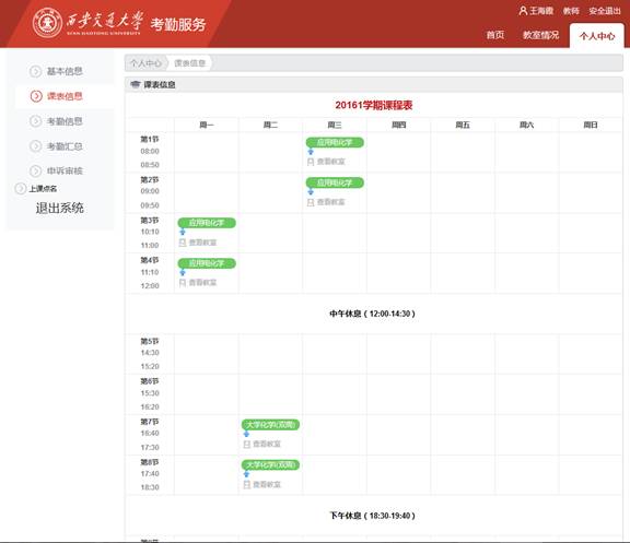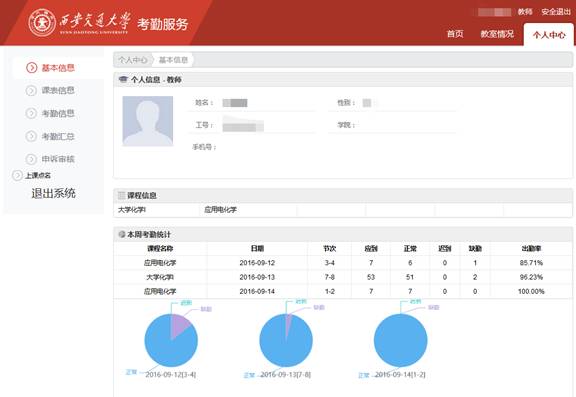 教师可以登录考勤服务平台进行电子课表、学生考勤明细、上课情况统计等查询。可以进行调课申请、请假审核、课程调整、上课点名等业务办理。