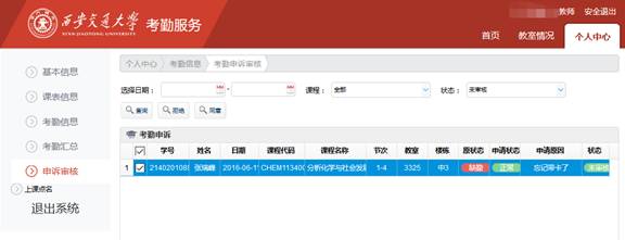默认显示申诉两周周期内的申诉列表,方便教师对申诉周期内的有效申诉进行审核。也可通过日期查询或查询全部申诉。勾选要处理的申诉申请后,可点击“同意”或“拒绝”按钮处理申诉。