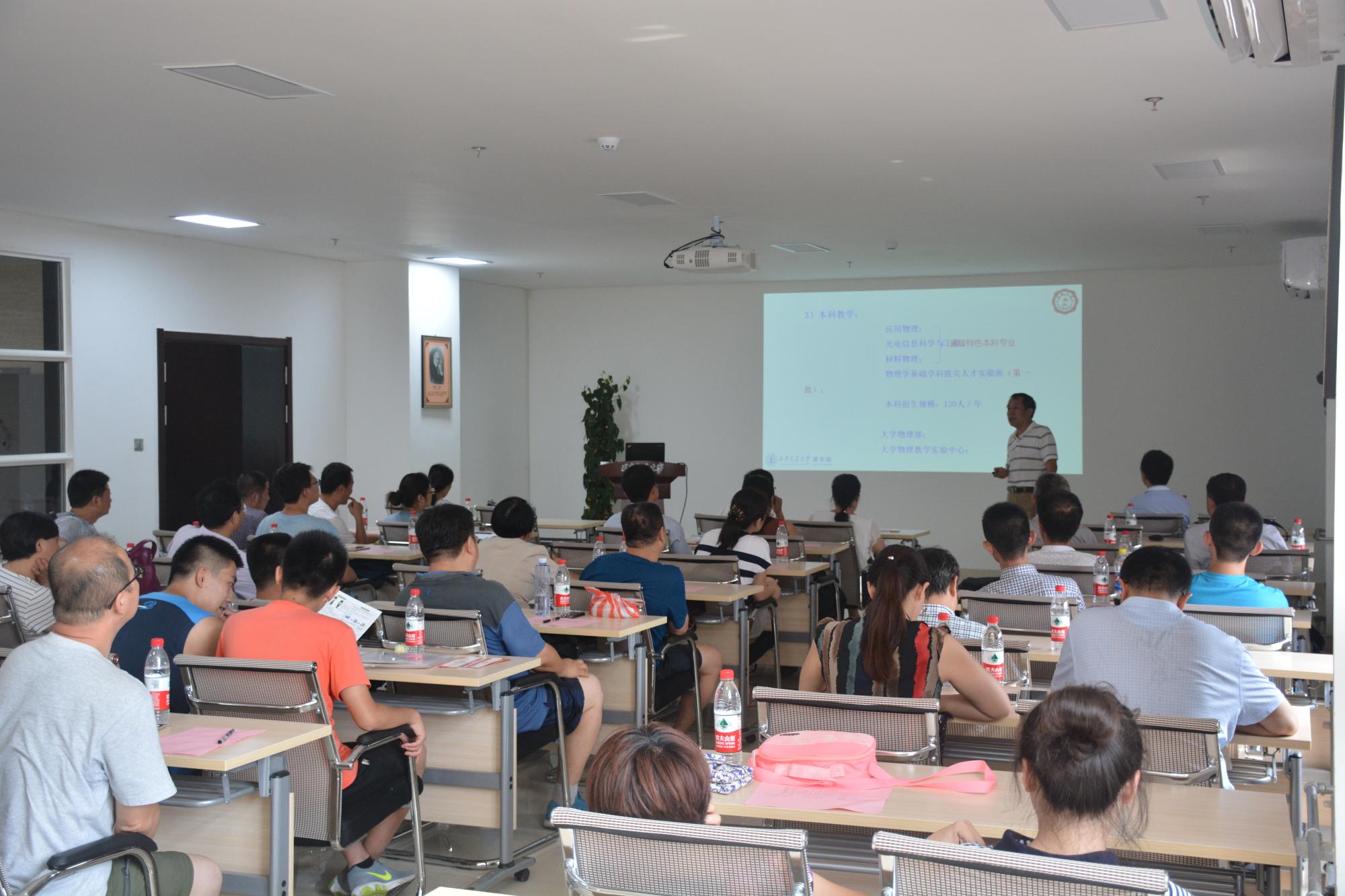 物理学科家长会在基础学科大楼会议室进行,理学院院长李福利、物理学科主任张胜利以及李宏荣、张沛、汪飞、魏小平等老师与40余位家长共同参加了家长会。会议由张沛老师主持并代表理学院欢迎各位家长的到来。物理学科主任张胜利向各位家长详细介绍了物理学科的相关情况。此后,各位家长就自己关心的问题与各位老师进行了深入沟通,在专业设置、班主任管理、学业提升等方面进行了交流,家长们也向学院提出了很多宝贵意见。