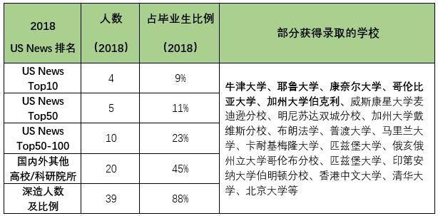 2018届物理试验班共有毕业生44人,其中9人获得英国牛津大学、美国耶鲁大学、康奈尔大学、哥伦比亚大学、加州大学伯克利、威斯康星大学麦迪逊分校等世界排名前50(2018 US News排名,下同)高校的录取通知,超过今年毕业生总人数的20%。10人申请到美国布朗大学、卡耐基梅隆大学、加州大学戴维斯分校等世界排名前50-100高校的硕士/博士,约占毕业生总人数的23%。进入世界排名前100高校深造的比例为43%,比去年增加了3个百分点。本科毕业后继续在国内外知名高校、科研院所深造的学生接近9成。