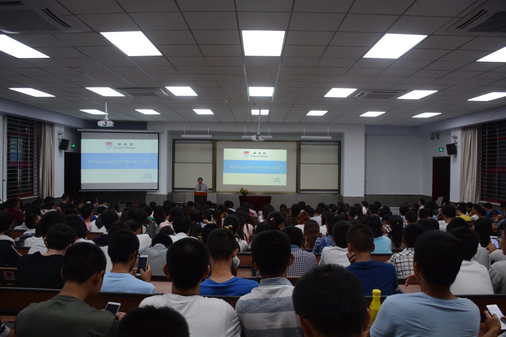 高宏副院长介绍了理学院的基本情况,鼓励同学们在学习科研上发挥自己的力量,结合典型案例,告诫大家切勿沉迷于手机及网络游戏;同时展示了近两届理学院本科生的毕业就业情况,进行了简要分析,对大家的职业规划进行了有效指导,希望大家尽早规划自己的大学生活,为自己谋划一个光明的未来。