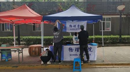 伴随着主持人慷慨激昂的解说词和欢呼声,学院研究生代表队由院长高宏、党委书记杨小渭、党委副书记张沛带队,物理学子紧随其后,步伐整齐坚定,“百年交大,理学当先,一流交大,一流物理”的口号声回荡在田径场上,展现了物理人的独特风采!