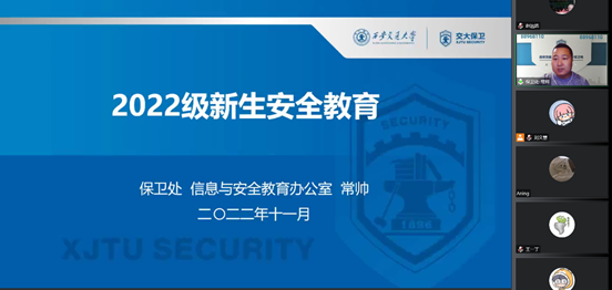 为切实增强新生安全防范意识,提高新生安全防范能力,营造安全文明的校园氛围,11月4日晚,物理学院和数学学院在线上举行2022级新生安全教育讲座。本次讲座由保卫处信息与安全教育办公室常帅老师主讲,物理学院辅导员刘文慧主持,物理学院和数学学院2022级研究生新生参加讲座。