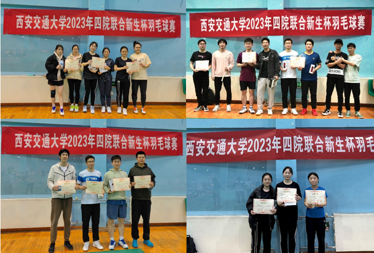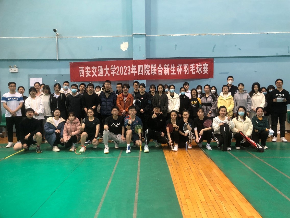 为了增进新生之间的交流和友谊,提高体育素养和竞技水平,西安交通大学马克思主义学院、人文学院、管理学院和物理学院联合举办了“四院联合”新生杯羽毛球赛。比赛于3月18日和19日在兴庆校区文体中心羽毛球馆进行,四个学院共有100余名同学报名参加。